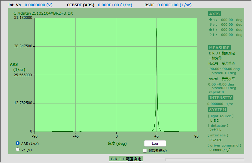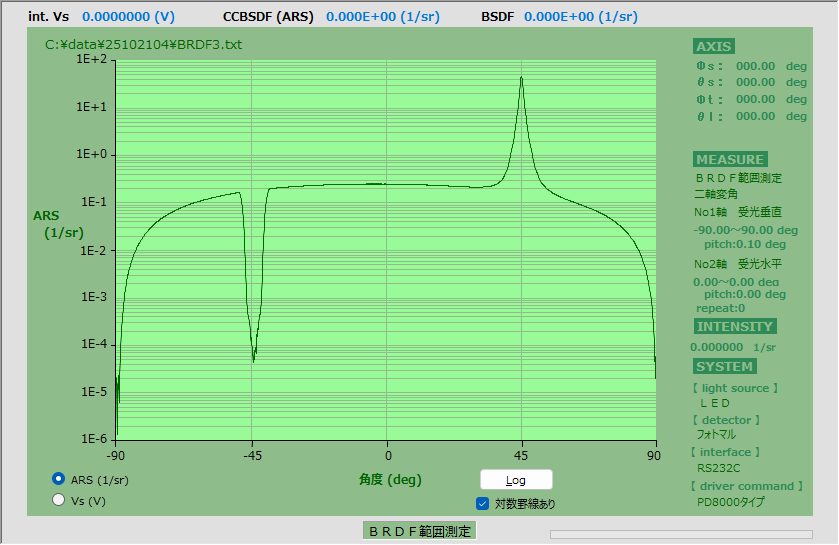 - 通常の散乱特性以外に、BRDF・BTDF、反射率・透過率の測定が可能。標準白色板で校正