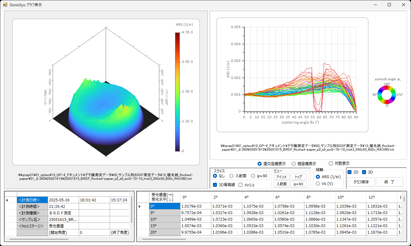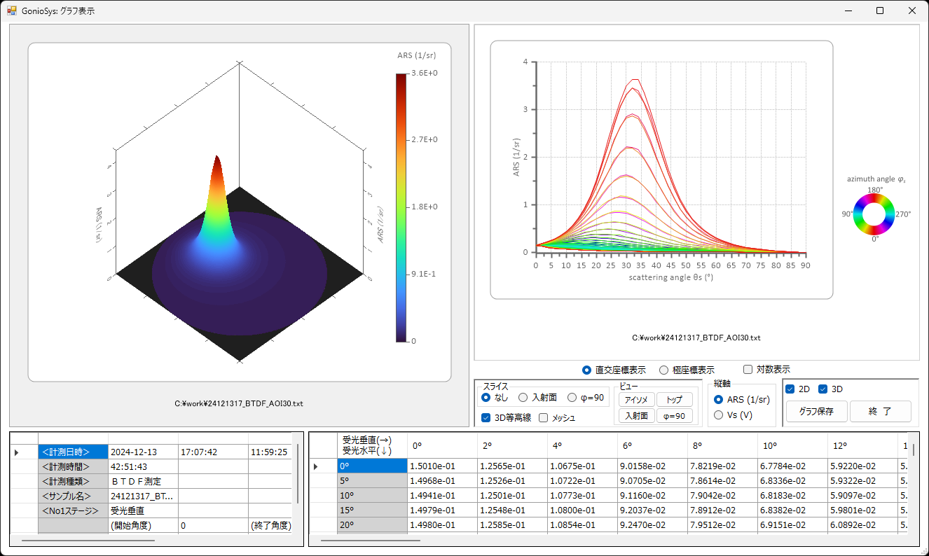 - 透過、反射の特性を3次元で測定